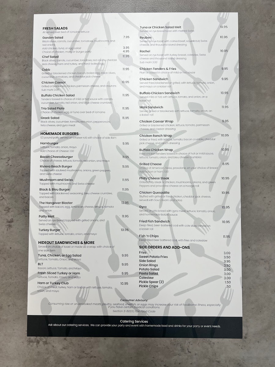 Whether dining in a cozy corner or grabbing a meal to go, The Hideout Kitchen and Cafe promises a satisfying experience to fuel your day.